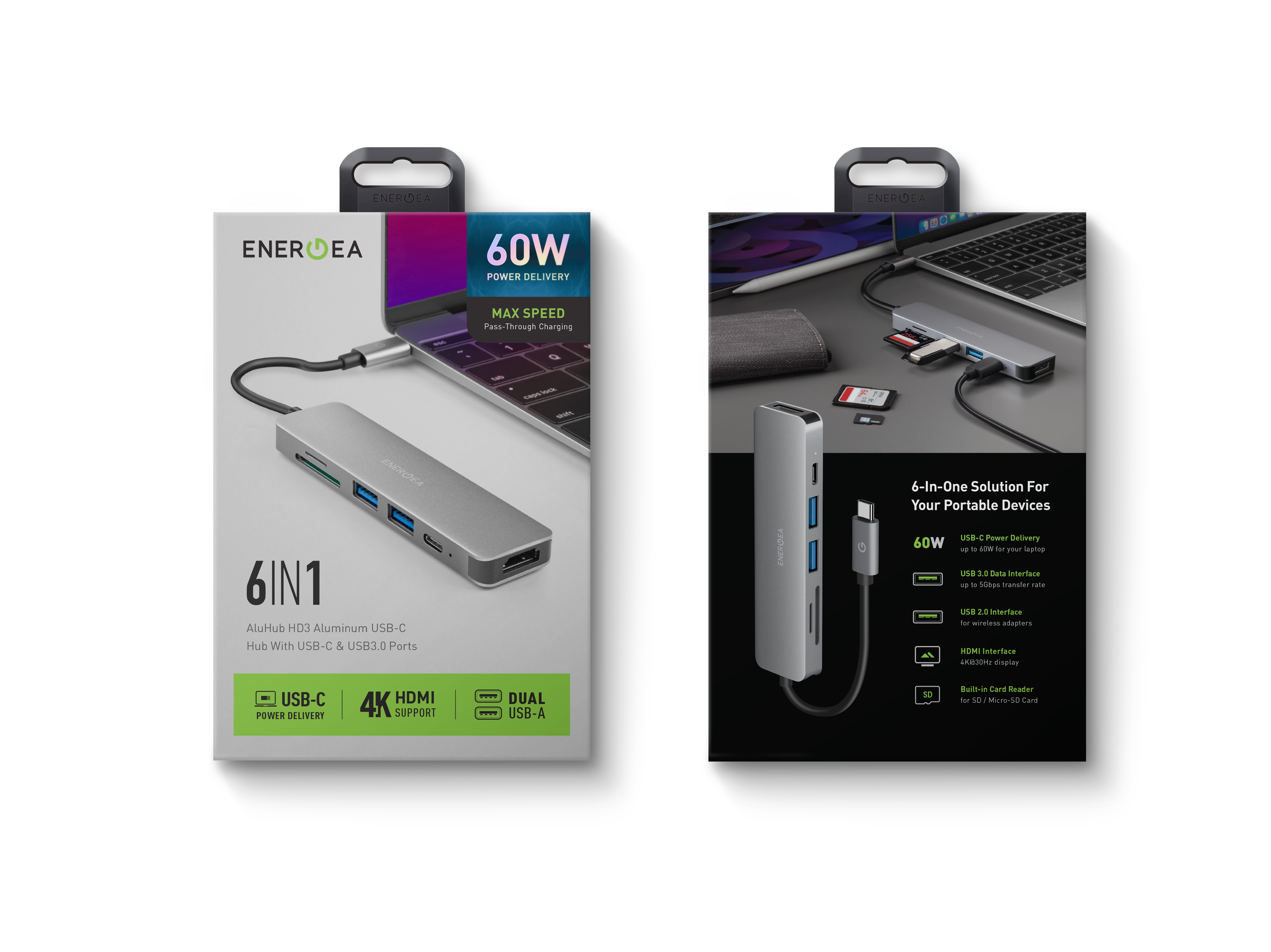 60W 6-in1- USB-C 充電集線器,配備 USB-A 和 4K HDMI 接口