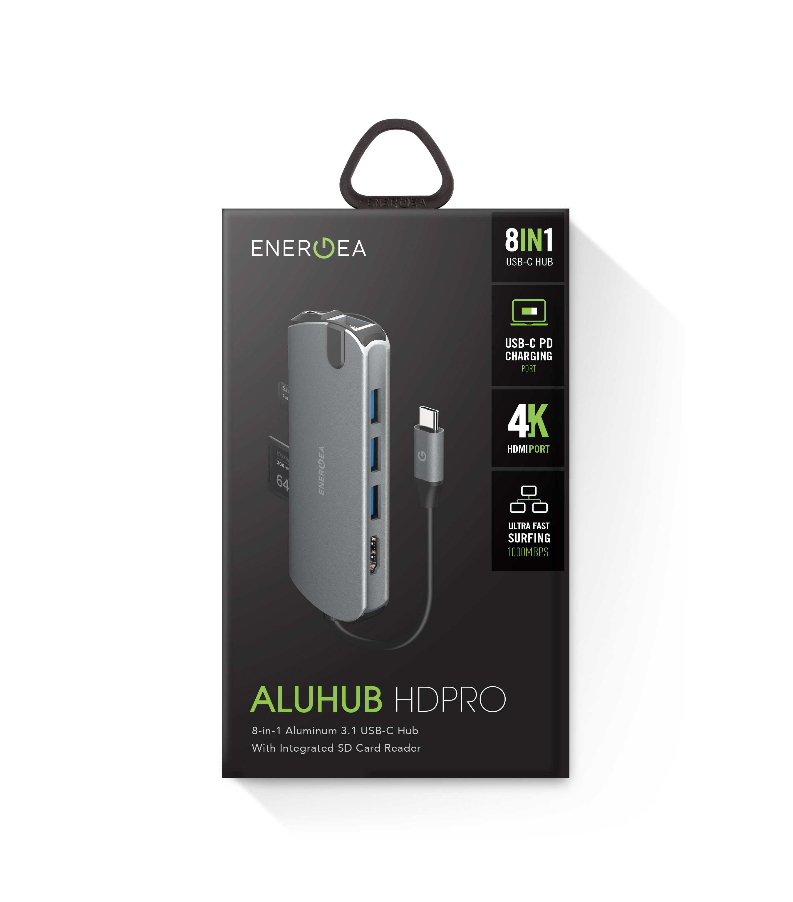 8-in-1 鋁製 3.1 USB-C 集線器,整合 SD 卡讀卡器