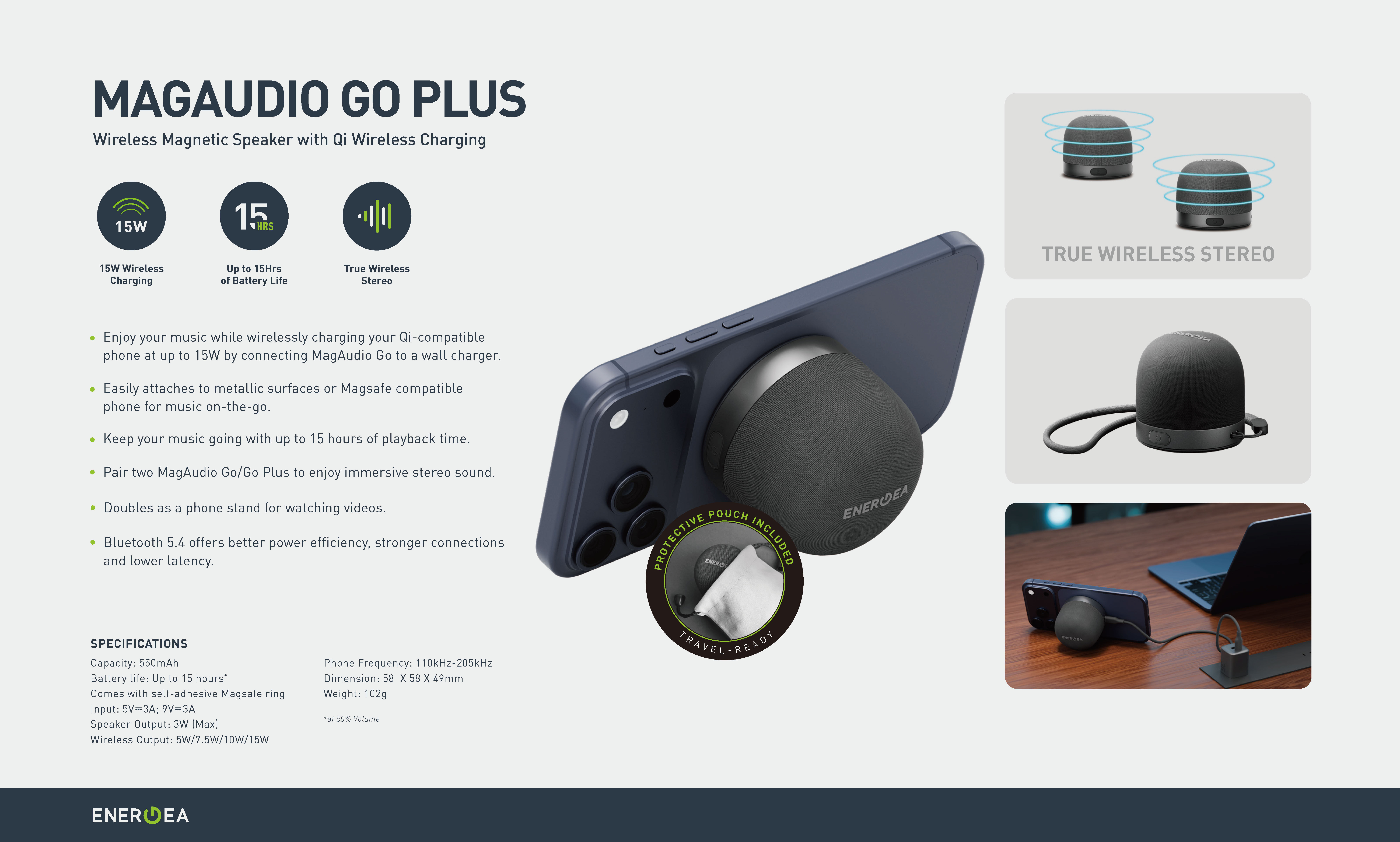 ※ 輕鬆吸附於金屬表面或 Magsafe 相容手機,隨時隨地享受音樂